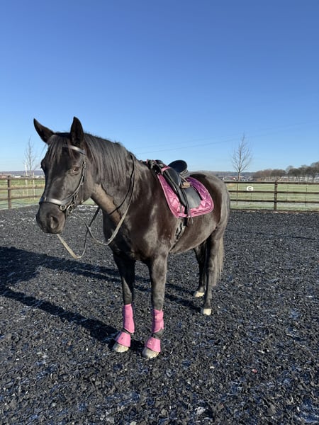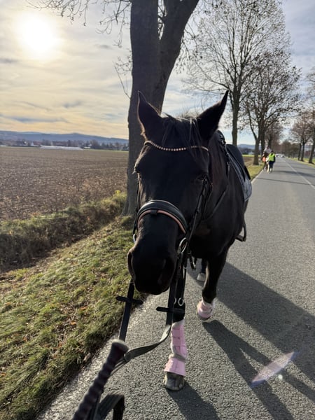 Mare | 9 years old (04/2016) | approx. 16.1 hh | Black Ridden mainly for leisure Safe in terrain and traffic Very gentle in handling Familiar with groundwork, lunging, double lunge, side reins, etc. Well-behaved with the farrier, veterinarian, and during loading Healthy, teeth checked once a year by a equine dentist Open stable/stall housing known Location: Salzgitter, 38259 Price: €12,500 Trial ride available for a fee of €50, which will be deducted from the purchase price.