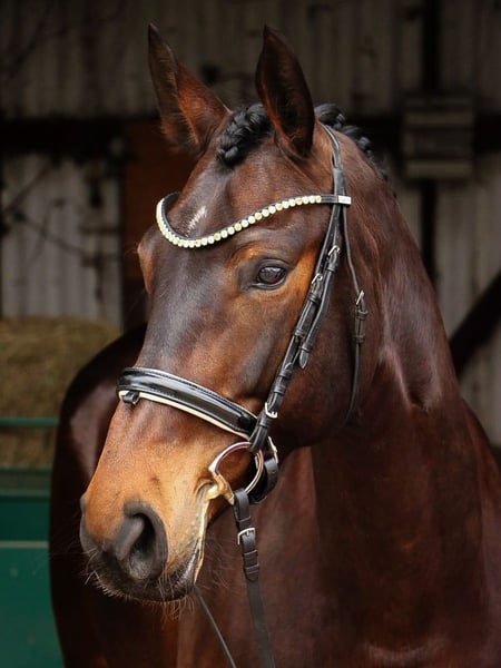 Qadira P, außergewöhnlicherweise auf der Weide geboren, zeigte früh schon ihr Talent für den zukünftigen Sporteinsatz durch das regelmäßige Überwinden der Weidezäune. Dreijährig mit der Anwartschaft für die Hannoveraner Staatsprämie ausgezeichnet, bestätigte sie mit Idealnoten ihre außergewöhnliche Grundqualität. 2020 führte sie ein Fohlen von Dia Pleasure bei Fuß. Dadurch kam sie erst sechsjährig unter den Sattel. Als Musterschülerin mit großer Auffassungsgabe konnte sie in kurzer Zeit den Ausbildungsrückstand wettmachen. Immer sehr eifrig in der täglichen Arbeit und den reiterlichen Hilfen folgend, machte sie sehr schnell Fortschritte und machte natürlich bei ersten Turniereinsätzen auf sich aufmerksam. Ihr Trainingsfleiß und ihre hohe Rittigkeit konnten bereits dressuraffine Reiterinnen beim Springen über Hindernisse bis 1,25 m überzeugen. In ihrer ersten Saison glänzte sie bereits mit Siegen in 1,20-m-Springen und Platzierungen in 1,25-m-Springen. In ihrer bisherigen Karriere wurde sie von verschiedenen Ausbildern begleitet, die ihre hohe Leistungsbereitschaft bestätigten. Ihre nationalen und internationalen Erfolge sprechen dabei für sich. Ihre Vielseitigkeit zeigte sie ebenfalls schon in Geländeparcours, die sie mit Leichtigkeit absolvierte. Eine Sportpartnerin, die bereit ist, alles für ihren Reiter zu geben.Das Pferd ist unter der Vertragsnummer 23 354765225 bei der R+V Versicherung versichert. Der Versicherungsschutz umfasst eine Tierlebenversicherung im Premium Tarif mit einer Versicherungssumme von 50.000 EUR. Versicherungsschutz besteht für die Risiken Tod oder Nottötung durch Krankheit, Unfall (auch Tod durch unfallbedingte Ataxie und Sehnenverletzung), Transport, Brand, Blitzschlag, Explosion, Diebstahl, Raub und Abschlachten in diebischer Absicht, Trächtigkeit und Geburt bei Stuten und Operationen (auch Kastration bei Hengsten). Bis Eintritt des 18. Lebensjahrs des Pferdes, besteht kein Selbstbehalt. Danach beträgt dieser 20%. Eine OP-Versicherung ist ebenfalls vorhanden. Sportname: Qadira P Sporterfolge: SPR Klasse A1 (Spr A*): 2/2 Klasse A2 (Spr A**): 1/1; 1/3; 1/w Klasse L (Spr L): 1/1; 2/2; 2/3; 1/4; 3/w Klasse M1 (Spr M*): 2/1; 4/2; 2/3; 1/4; 1/5; 2/w Klasse M2 (Spr M**): 2/1; 1/3; 1/w Zuchtprämie: 1xIa. 1. Generation Sportpferde Springen: Quait Fox v. Quarismo (SPR: int. 1,45 m mit Michael Viehweg); Caprivi 14 v. Contendro I (SPR: 1,45 m mit Bernard LEFEVRE). Aufbauprüfungen Springen: Athos 233 v. Avagon (SPR: 1,30 m mit Benjamin Wulschner); Capuzzi v. Countselo (SPR: L,VA 2018,FoVA 2015). Bes. Prämientöchter: HannPr Carmina P v. Comte. 2. Generation Sportpferde Dressur: De Noir M v. Don Frederico (DRE: S*** mit Anna-Lena Kracht,VA 2011: 70.000 €); Rubicello 3 v. Rohdiamant (DRE: S** mit Thomas Rive); Zeus B v. Zack (DRE: S* mit Sandra Newedel-Hilpisch); HannPrA Black Rose M v. Bretton Woods (DRE: M** mit Nina Roth,VA 2019); Fleur de Lys M v. Fürstenball (DRE: M* mit Elena Schoo); Fürst 60 v. Fürst Romancier (DRE: M* mit Cathryn Rippelbeck). Sportpferde Springen: Great Guana Cay v. Glorieux (SPR: 1,50 m mit Rüsen,Ingo); Sambuca/Sambuca M v. Sandro Song (SPR: 1,45 m mit Myriam Girrbach); Izzy v. Inshallah de Muze (SPR: 1,40 m mit Myriam Girrbach); Persaldo 9 v. Perpignon (SPR: 1,40 m mit Christian Glienewinkel); Cortina 197 v. Cola (SPR: 1,40 m mit Dennis Flacht); Pokerface 40 v. Perpignon (SPR: 1,40 m mit Anne Neumann); Napoli 37 v. Natiello (SPR: 1,40 m mit Anke Büsch,VS: int. S mit Jan Büsch,Gelände: L,Deutsche Meisterschaft der Vielseitigkeitsreiter -Mannsch.- 2008); Corasonne v. Cranach (SPR: 1,35 m mit Birgit Gärtner); Stokkarda v. Stakkato (SPR: 1,35 m mit Fabrizio FALCHETTI); Snowfield v. Stolzenberg (SPR: 1,30 m mit Julia Forndran); Eddy 227 v. Escudo I (SPR: 1,30 m mit Anneke Lücken); Paul 624 v. Perpignon (SPR: 1,30 m mit Leonie Bredemeier). Sportpferde Vielseitigkeit: Napoli 37 v. Natiello (SPR: 1,40 m mit Anke Büsch,VS: int. S mit Jan Büsch,Gelände: L,Deutsche Meisterschaft der Vielseitigkeitsreiter -Mannsch.- 2008). Aufbauprüfungen Dressur: Formidable M v. Fürst Romancier (DRE: L). Aufbauprüfungen Springen: Bamika 2 v. Bamako de Muze (SPR: L); Escada HM v. Escudo I (SPR: L); San Marino 24 v. San Brasil (SPR: L,VA 2007); Switch v. Stakkato (SPR: L). Aufbauprüfungen Gelände: Nugget 55 v. Natiello (Gelände: L). gekörte Hengste: gek. Hengst Gralswaechter v. Gralsritter (Adelheidsdorf 1993). Auktionspferde: Fürst M 2 v. Fürst Romancier (VA 2016); Rhodesia/Rhodesia 3 v. Rubinero (VA 2009); Gashira/Gashira 4 v. Goodman (VA 2005); StPrA Wajama/Wajama M v. Weltmeyer (VA 2001). Bes. Prämientöchter: StPrA Gracia v. Goodman; StPr Well done M/Well-done M v. Weltmeyer; StPr Granada v. Gralsritter. 3. Generation Sportpferde Dressur: StPrA Naomi/Naomi 144 v. Natiello (DRE: M** mit Ann-Kathrin Hillebrecht). Sportpferde Springen: Prinz 1293 v. Perigueux (SPR: int. 1,55 m mit Hans-Dieter Dreher,Grand Prix Table A 2021,World Cup Table A 2020,Springprüfung Kl. S -Großer Preis****- -international- 2019,Grand Prix Table A 2019,Springprüfung Kl. S -Großer Preis***- -international- 2019,Springprüfung Kl. S -Großer Preis***- -international- 2019,Springprüfung Kl. S -Großer Preis***- -international- 2018,VA 2012); gek. Hengst Quinturo/Quinturo 2 v. Quaid I (SPR: 1,45 m mit Karl jun. Brocks,Verden 2011,HM 2011: 210.000 €,Prä.Spr. Körung Verden 2011); gek. Hengst Glenfiddich/Glenfiddich 24 v. Graf Grannus (SPR: 1,50 m mit Kutscher,Marco,Verden 1995,HM 1995); Clintolina 3 v. Clinton's Heart (SPR: 1,45 m mit Sascha Braun); Celebration 59 v. Comme il faut NRW (SPR: 1,40 m mit Jens Schmidt); Sito 10 v. Stolzenberg (SPR: 1,40 m mit Marc Bauhofer); Exklusive's Look at me v. Lord Pezi (SPR: 1,40 m mit Ales Opatrny); Start up v. Stanley (SPR: 1,35 m mit Daniel Armbruster,VA 2016); v. Quaid I (SPR: 1,35 m mit Randy Sherman); Qualina T v. Qualito I (SPR: 1,30 m mit Alina Tietze); San Benito 4 v. Stakkato (SPR: 1,30 