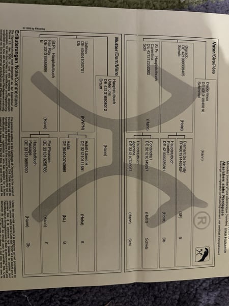 Aus eigener Zucht, Amateur erprobt, Super brav und rittig, bis L zwei Sterne platziert, dann gab es leider eine Verletzungspause, die zur Zucht genutzt wurde, Freispringen in der Zuchtstuten Prüfung 2 x 9,5. FN Zuchtwertindex 125 (2025), Hannoveraner Springpferdeprogram, Wer noch für diese Saison eine interessante Stute für die Zucht sucht hat hier eine gute Gelegenheit. Diacontinus x Ustinov x For Pleasure, Vollschwester der Mutter 1,40 gewonnen.