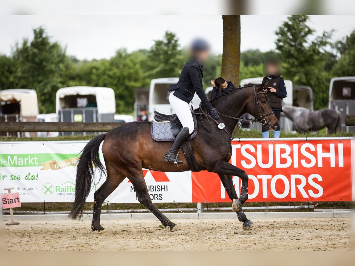 Zum Verkauf steht meine 10-jährige dunkelbraune Stute. Ich habe sie selbst vierjährig angeritten und bis vor 2,5 Jahren auch auf Turnieren in Dressur und Springen bis zur Klasse A vorgestellt. Auch kleine Geländehindernisse meistert sie mit Spaß und ohne Zögern. Seit Kurzem wird sie von einem 13-jährigen Mädchen mitgeritten, wobei sie sich geduldig und vorsichtig zeigt. Im Gelände ist sie in der Gruppe sicher und auch bei Urlauben in fremder Umgebung präsentierte sie sich unkompliziert. Die Stute benötigt regelmäßige Arbeit sowie den zusätzlichen Ausgleich auf der Wiese oder dem Paddock. Platz vor Preis!