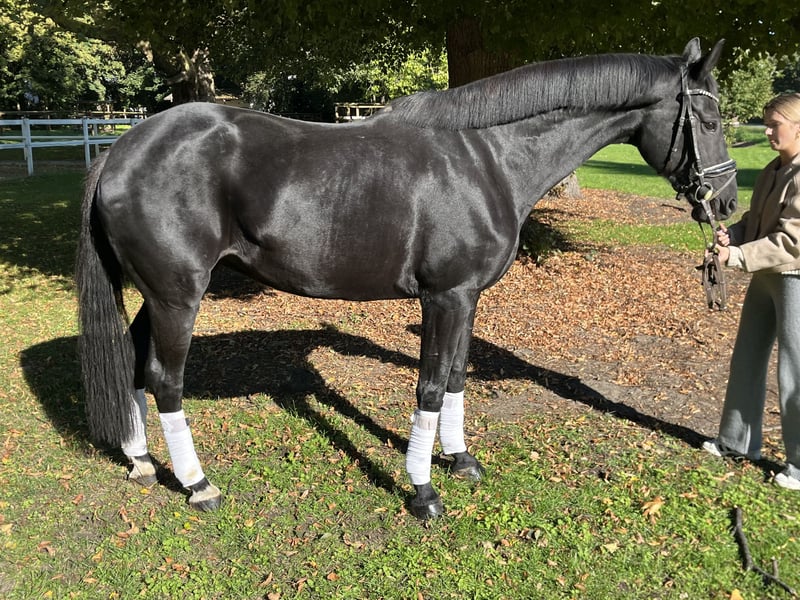 On behalf of Beautiful premium black mare by van Vivaldi for sale. Three very good gaits and an absolutely fantastic rideability characterize this premium mare. She is a pleasure to ride, easy in the contact, and provides a very nice feeling in the saddle. She has achieved a very good SLP with scores of 8.5. She brings joy every day. She is well-mannered and shows herself to be fearless under the saddle. She has also been used for breeding and is doing a very good job in that area as well. Current X-rays are available. She is a true presence, and we look forward to appreciative hands. Price plus VAT. Location: Hamm.