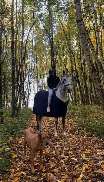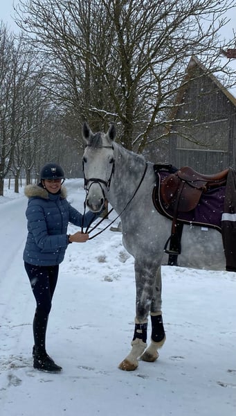 Z wielkim żalem musimy rozstać się z naszą klaczą Action Girl. To niezwykle kochany i niezawodny koń, zarówno w codziennym obchodzeniu się, jak i pod siodłem. Jest bardzo spokojna również w terenie i podczas czyszczenia kopyt. Uczestniczyła w konkursach do skoków na poziomie M*, ale niestety dla amatora nie jest odpowiednia do wyższych skoków, ponieważ jest zbyt ostrożna. Bardzo dobrze wyobrażalibyśmy ją sobie u kogoś, kto chce startować na turniejach w skokach E-L lub po prostu cieszyć się jazdą na bardzo dobrym koniu w domu ☺️