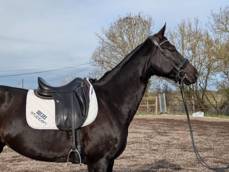 Lovely Hanoverian mare 16.4 hh Born in 2015 (11 years old in 2026) Fine, pretty, and gentle, with no signs of resistance, almost ready for Saint Georges tests. Very easy to handle and perform lateral work. Starting to work on flying changes at the three-tempi, pirouettes, and piaffe. Respectful in hand and during ground work (lunging, long reins). Recent veterinary check with clear radiographs available. Housed in a box stall with an attached paddock, but she would also enjoy being in a group. Sociable and friendly. Worked by both professionals and amateurs.