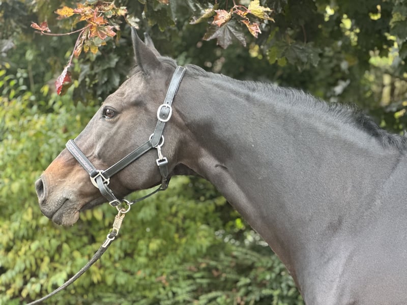 For sale on behalf of a client: Elegant, Versatile Hannoverian Mare! This beautiful dark-coated Hannoverian mare was born in 2015 and has a height of 16.1 hh, placing her in the ideal middleweight category. She is an all-rounder, excelling in eventing as well as other disciplines. She has placements in cross-country, jumping A, dressage A, and eventing, and has won an A-level style cross-country competition. In handling, the mare is very well-behaved. She loads and travels easily in trailer and truck, gets along well with other horses, and is easy to clip. Under saddle, she is not spooky, not hot, but also not overly energetic. She is sensitive, which makes her unsuitable for beginners. She is familiar with numerous different venues, and hacking alone or in a group poses no problem for her. Due to her interesting pedigree and good conformation, she is also of interest for breeding. A TÜV report from 2020 (age 5) is available and shows no issues. If you are interested or would like more information, we look forward to hearing from you!