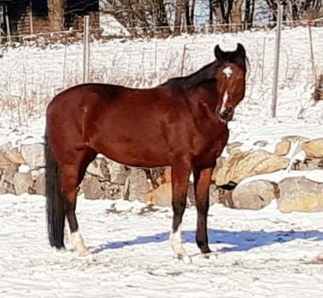 Elegante - Verbandsprämienstute - für alle Bereiche des Pferdesports geeignet. Ein Pferd mit sehr guten GGA, schick, mag immer gefallen und mit genügend Go ausgestattet. Geschwister aus der selben Mutter sind im Springsport bis 150 cm unterwegs. Meta 31 150 cm My Girl 150 cm Luke Lele 120 cm Miramis 110cm Aus der Schwester Feline kommt der Wallach Colorado v. Cornet Obolensky, der ebenfalls 150 cm unterwegs ist. Vollbruder in Dressur und Springprüfungen bis 135 cm gelistet. Kann als Freizeitpferd sowie Sportpferd geritten werden, nicht für reine Anfänger geeignet.Sehr leicht in der Hand und Anlehnung. Kein Pferd für Harte ziehende Hände! Hatte bereits ein sehr gutes prämiertes Fohlen von Kanthago de Revell , was bei uns aufwächst. Derzeit wird die Stute in Dressur - Springen und als Geländepferd VS weiter ausgebildet. Aktuell springen wir sie in der Springstunde einen kleinen E bis A Parcour sicher,mit viel Luft nach oben.Wasser gar kein Problem! Springablauf mit sehr schnellen Reflexen im Voderbein.Nicht kuckig... Stute könnte auch tragend gemacht werden in der Saison 2026 mit Con Spirit (Cornet Obolensky - Acorado) Oder Eliot D (Emerald - Chacco Blue ) Probereiten :Reitplatz vorhanden,keine Halle.