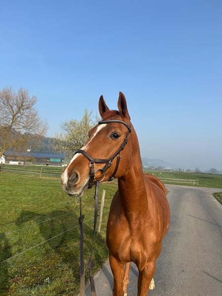 Due to health reasons (my own), I have to sell the wonderful Hanoverian mare What's up Tiger Lily. Lily, born 05/06/2014, chestnut, mare, Hanoverian. Approx. 16.1 hh. Lily is a lovely and attractive horse: 1. She is very easy to handle, whether grooming, farrier, vet, trailer, or hacking. She is simply fantastic in the stable. 2. Lily is very traffic-safe. 3. You can ride away from or join a group without any issues. 4. She can be ridden alone or in a group (dogs/horses). She doesn't need to be at the front and feels comfortable in the second row. On her beloved gallop stretches, she naturally wants to go, but ends up relaxed on a long rein. Breaks in water or for tourist photos are always a welcome change. 5. She can be lunged wonderfully; she responds well to voice commands and enjoys rolling in the sand before and after riding. She doesn't know halters with knots or circus training... because 6. Her main discipline was show jumping, where she achieved successes up to 1.20 m. Although Lily is very committed, forward-going, and cautious in jumping, she requires a confident rider. She can be a bit spooky at times. 7. Lily has also participated in some cross-country training and competitions, with varying success. 8. Lily is very sensitive in the mouth and needs a delicate hand. 9. She does not buck, rear, or bite. 10. For a treat, she will pretty much do anything! :) Lily is looking for a 5-star home with 5-star people. Serious inquiries are welcome to arrange a test ride. (078 680 44 90)