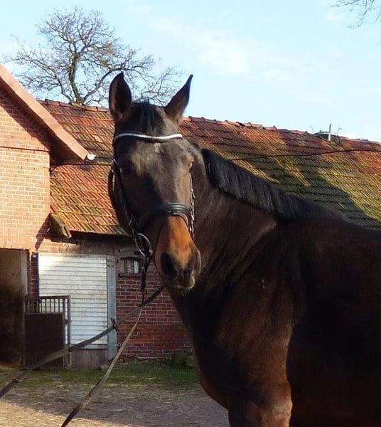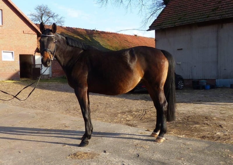 Healthy 12-year-old Main Studbook mare by Charilan. She is due to foal in early April from the Celle Land State Stallion Diacontinus. So far, the mare has foaled four colts. She consistently gains weight well and is an experienced broodmare. Charilan himself was successfully used as a double-proven sire. From her dam line, successful show jumpers up to 1.55 m, licensed stallions, and dressage horses have been bred, including the renowned Anisette line. The mare can stay at the breeder's stable until foaling if desired. Prior to breeding, she was casually ridden for leisure. This can be resumed once the foal is weaned. She has never been ill or injured. Sale due to reduction of horse holdings. Viewing possible by arrangement.