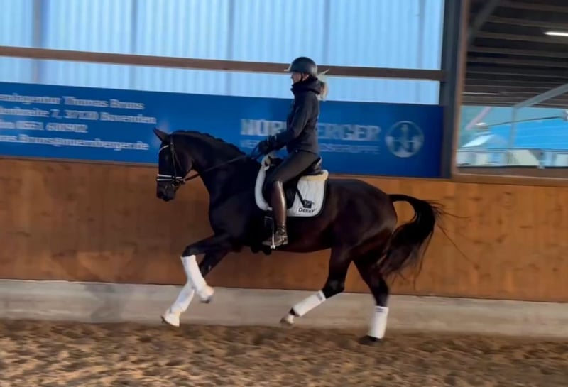 Holly is a charming 13-year-old mare, sired by Floratio out of Brentano II. She has already achieved placings up to class M and has been successfully competed by juniors in the past. Holly consistently gives her rider a confident and secure feeling. In addition to dressage, she also enjoys jumping. Holly is very easy to handle, well-balanced, and personable in her interactions. The perfect teacher for ambitious riders and juniors.