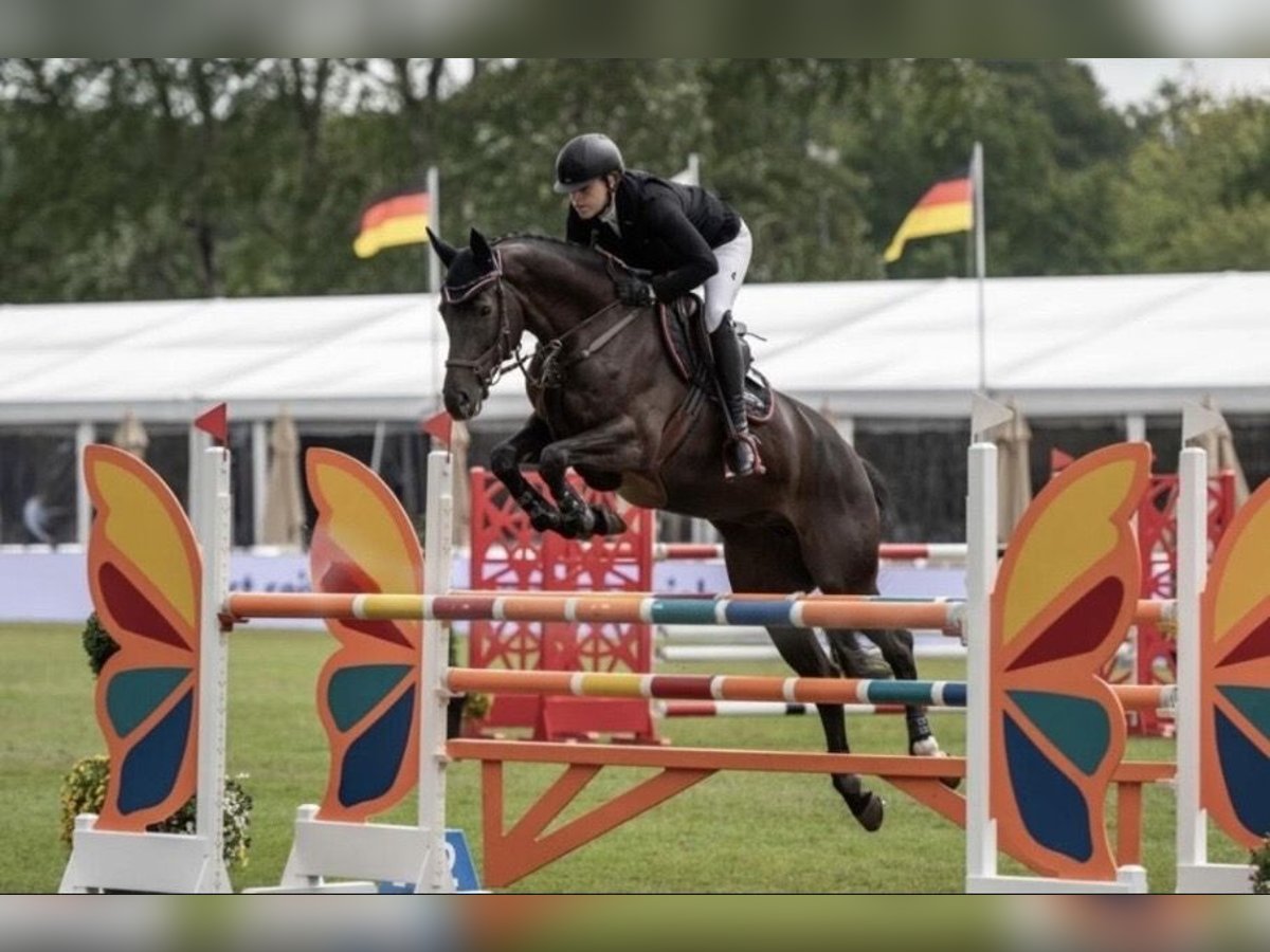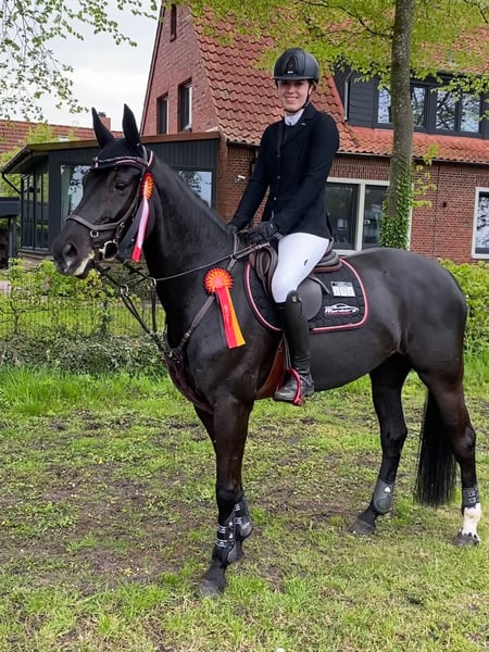 Schweren Herzens muss ich mich aus beruflichen Gründen von meiner 13-jährigen Stute Val d‘Isere N trennen. Valli punktet mit einem edlen Erscheinungsbild, drei tollen Grundgangarten und besitzt eine gleichmäßig Stilvolle Sprungtechnik, außerdem ist sie sehr brav im Umgang und auf dem Turnier, weshalb sie ideal für den Amateursport geeignet ist. In der täglichen Arbeit ist sie fein zu reiten, sie kennt das ausreiten und auch ohne Sattel geritten zu werden. In ihrer letzten Turniersaison 2023 hat sie L und M* springen gewonnen und ist im M** Springen platziert. Dann habe ich sie aus beruflichen Gründen besamen lassen und sie hat im Frühjahr 2025 ein Hengstfohlen von Cador bekommen. Seit Dezember 2025 ist Valli wieder unter dem Sattel und konnte 2026 auf den ersten Turnieren direkt wieder mit Nullrunden und Platzierungen überzeugen. Aktuell M* Springen platziert. Sie ist vollkommen gesund, brav beim Schmied, Verladen, Ausreiten etc. Sehr gute AKU von 2021 vorhanden Gerne beantworte ich weitere Fragen oder verschicke Videos.
