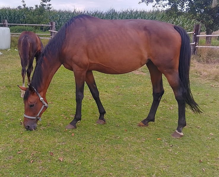 12j Sir Donnerhall Stute...... direkter Stamm der Dressurlegende FIDERMARK !!!!! , ca 171 Stkm, dbr., trgd für 4/26 von Fair Deal, sehr fruchtbare Stute !!! Gekörte und GP Pferde aus dem Stamm !!! Zzt mit bewegungsstarkem Hengstfohlen bei Fuß , könnte evtl.mit verkauft werden..! Vollschwester letztes Jahr über Westfalen überdurchschnittlich verkauft! Nur wegen Aufgabe der Zucht zu verkaufen..... Bei Interesse unter +491739558692 melden