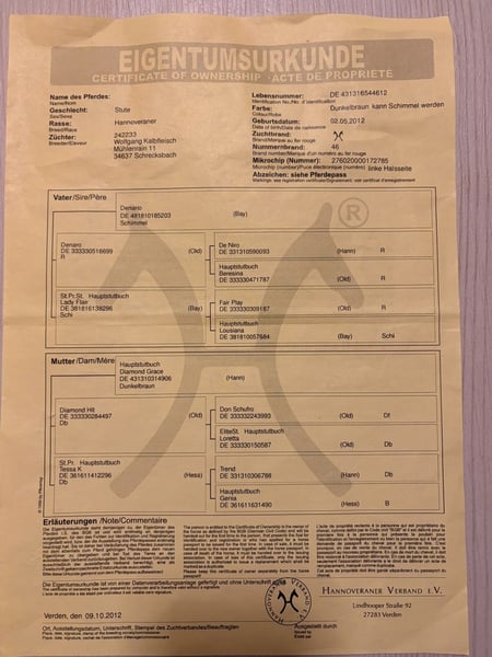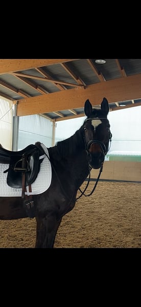 Zum Verkauf steht unsere Denaria-Grace, eine 2012 geborene Stute mit ca. 1,62 m Stockmaß und schlanker, sportlicher Statur. Sie ist dressurbetont gezogen, verfügt über viel Schwung und zeigt sich unter dem Reiter motiviert, aufmerksam und leistungsbereit. Grace ist unerschrocken und eignet sich hervorragend als gehobenes Freizeitpferd. In der täglichen Arbeit überzeugt sie durch ihre Rittigkeit und ihr angenehmes Wesen. Im Gelände geht sie brav in kleiner Gruppe, in größeren Gruppen zeigt sie sich etwas temperamentvoller, bleibt dabei jedoch jederzeit gut handelbar. Wir haben Grace ursprünglich für unseren Schulbetrieb erworben, mussten jedoch feststellen, dass sie aufgrund ihres schwungvollen Ganges und ihrer Sensibilität nicht für Anfänger geeignet ist. Da wir aktuell zu wenige fortgeschrittene Reiter haben, suchen wir nun ein passenderes Zuhause für sie. Wir sehen Grace ideal als Einpersonen- oder Familienpferd, da sie bei einer festen Bezugsperson deutlich losgelassener wird, Vertrauen aufbaut und sich mental wie körperlich gut fallen lassen kann. Zudem ist sie aufgrund ihrer interessanten Abstammung auch als Zuchtstute durchaus denkbar (siehe Bild). Gesundheitlich ist anzumerken, dass Grace auf dem linken Auge blind ist. Dies schränkt sie weder im täglichen Umgang noch bei der Arbeit in irgendeiner Weise ein. Außerdem zeigt sie ein sehr leichtes Sommerekzem, das mit einer Ekzemerdecke problemlos zu managen ist und kaum ins Gewicht fällt. Grace ist ein ehrliches, sensibles Pferd mit Potenzial, das einen ruhigen, erfahrenen Menschen sucht, der ihre Qualitäten zu schätzen weiß und ihr die nötige Konstanz bietet. Bei ernsthaftem Interesse freuen wir uns über eine Nachricht und ein persönliches Kennenlernen.