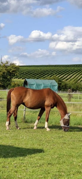 Donnamenica possiede un passo regolare, un trotto energico e un galoppo ampio e fluido. È inoltre molto disposta al carico e assolutamente lucida di mente. Donnamenica è compatibile con altri cavalli e ha già avuto due puledri, tra cui un puledro stallone, ora stallone approvato e presentato con successo in gara. A causa di alcune condizioni di salute, che però non limitano il suo utilizzo quotidiano senza l'uso della sella, viene ceduta come cavalla non montabile. È possibile lavorarla al longe e a terra, con motivazione e collaborazione da parte sua. La vendita avviene inoltre sotto la stipula di un contratto di tutela. Se tutto dovesse andare bene, potrei anche valutare di metterla a disposizione. Per qualsiasi domanda, non esitate a contattarmi.