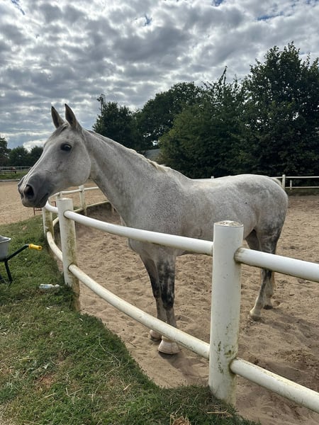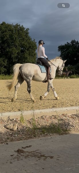 Da ich das Springreiten aufgebe, habe ich mich dazu entschieden, meine 14-jährige Hannoveranerstute (1,75 m) zu verkaufen. Sie ist topfit und möchte gerne gearbeitet werden. Da sie, gerade beim Springen viel Go hat, ist sie kein reines Anfängerpferd, ich kann sie mir aber für jemanden der schon ein bisschen Erfahrung im Springen hat sehr gut als Lehrmeister vorstellen. Sie ist ein absolutes Verlasspferd am Sprung und bleibt nie stehen und geht auch nicht vorbei. Distanzen macht sie auch immer passend, wenn es mal nicht passen sollte. Im Umgang ist sie sehr lieb und Menschenbezogen. Aktuell läuft sie Barhuf, kennt aber auch vollen Beschlag. Sie steht bei mir in einem Aktivstall und ist hier super zufrieden. Ich würde mir eine solche Haltung weiterhin für sie wünschen. Sie kennt auch Boxenhaltung, müsste dort aber auf Späne stehen, da sie Stroh auffrisst. Sie geht auch ins Gelände, braucht hier aber ein zweites Pferd oder einen sicheren Reiter, da es ihr alleine immer ein wenig unheimlich ist. Sie hat einen Befund im Rücken (Kissing Spines), welcher sie beim Reiten aber überhaupt nicht einschränkt, ich habe sie selbst damit gekauft und nie Probleme gehabt. Sie ist bis S-Springen ausgebildet und auch sehr Turniererfahren, ich denke aber, dass sie aufgrund des Rückens solche Höhen nicht mehr springen sollte. Bis L Höhe ist kein Problem und macht ihr auch großen Spaß. Ich verkaufe sie zudem nicht als reines Turnierpferd, da ich sie inzwischen eher im Freizeitbereich sehe bei jemandem der sie lieb hat und gerne von ihr lernen möchte. Ein passender Springsattel kann gegen Aufpreis erworben werden. Für das Probereiten nehme ich 40€ die beim Kauf verrechnet werden. Ich bitte ausdrücklich nur um ernstgemeinte Anfragen. Bei wirklich ernsthaftem Interesse schreib mir gerne mit einer kurzen Vorstellung von dir.