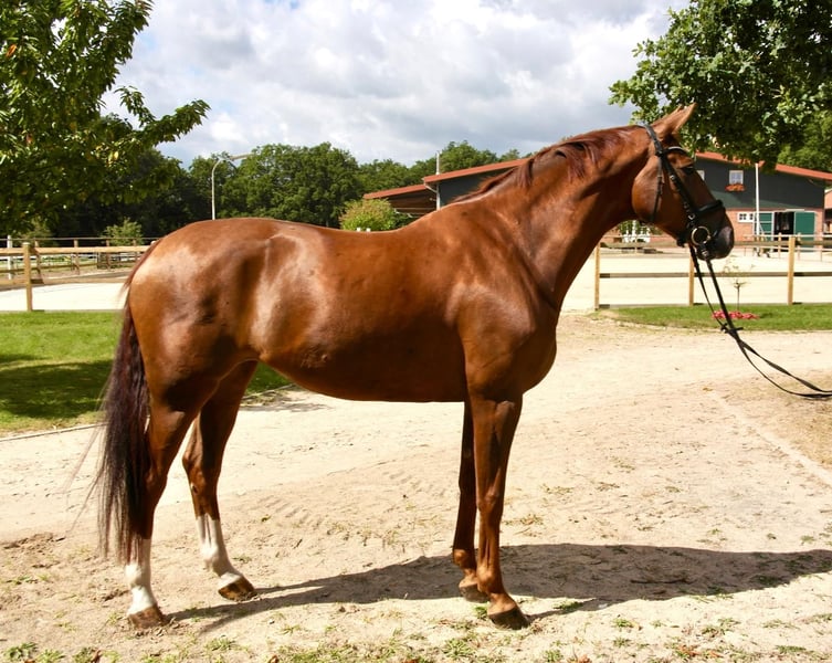 Traumstute Eternity S, ist eine bildschöne Hannoveraner-Stute aus dem Erfolgsstamm des Estobar NRW und der Staatsprämienstute Wilde Wolke (Wolkenstein II x Werther). Geboren 2011, vereint sie beste Dressurabstammung mit einem goldenen Charakter. Eternity S ist mehr als nur talentiert – sie ist eine verlässlicher Partnerin, die Ihnen das Reiten zum Genuss macht. Mit Platzierungen bis Dressur M** und sicher beherrschten S*-Lektionen ist sie ideal für alle, die im Sport weiterkommen wollen. Doch ihr größter Schatz ist ihr Wesen: Sie ist absolut umgänglich, menschenbezogen, schmiede- und verladefromm und auch im Gelände ein Verlasspferd. Sie eignet sich hervorragend für ambitionierte Junioren und Umsteiger, die ein qualitätsvolles und zugleich unkompliziertes und nervenstarkes Pferd suchen. Die lektionssichere Stute ist leicht zu reiten und besonders für anspruchsvolle Umsteiger und Junioren geeignet. Ein aktuelles Video von Eternity S senden wir Ihnen gerne auf Anfrage zu. Bitte nehmen Sie gerne Kontakt per WhatsApp unter 0172/ 4322493 (Maja Flemming) auf.