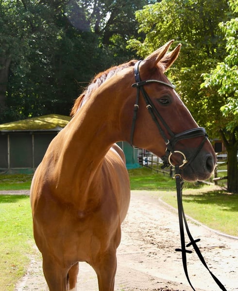 Yegua de ensueño Eternity S es una hermosa y elegante yegua Hannoverana de la línea de éxito de Estobar NRW y la yegua de premio estatal Wilde Wolke (Wolkenstein II x Werther). Nacida en 2011, combina una excelente genealogía en doma con un carácter dorado. Eternity S es mucho más que talentosa: es una compañera confiable que hace del montar una experiencia placentera. Con clasificaciones hasta la categoría de doma M** y movimientos en S* bien dominados, es ideal para quienes desean progresar en el deporte. Pero su mayor tesoro es su carácter: es completamente dócil, cercana a las personas, sin problemas para la ferradura ni para cargar en remolque, y también una compañera fiable en el campo. Es perfecta para jinetes jóvenes ambiciosos y jinetes en transición que buscan un caballo de calidad, fácil de manejar, sin complicaciones y con nervios de acero. La yegua, segura en las lecciones, es fácil de montar y especialmente apta para jinetes en transición y jinetes jóvenes con aspiraciones. Con gusto le enviamos un video actual de Eternity S bajo petición. No dude en ponerse en contacto a través de WhatsApp al 0172/4322493 (Maja Flemming).