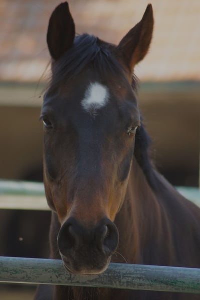 Lorena, een merrie die niet mooier geschilderd kon worden, kocht ik zes jaar geleden als rijpaard. Als bejaarde ruiter was ik op zoek naar een paard dat braaf en vriendelijk was en nooit mocht bokken (! :) ).