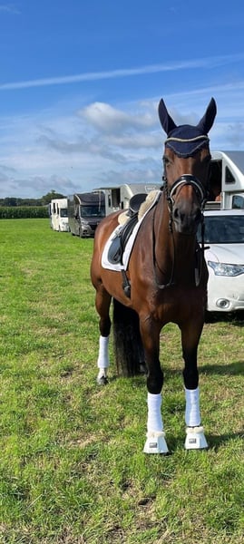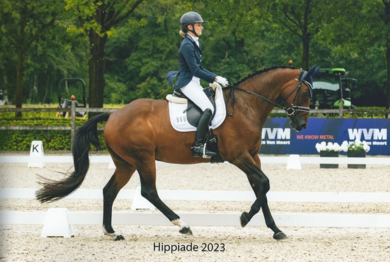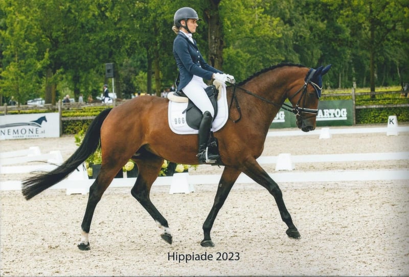 ⭐ Gossip Girl ⭐ 15 jaar ⭐ Schofthoogte 171 cm ⭐ Merrie ⭐ Goldfever II x Farewell III Gossip girl is een makkelijk paard zowel aan de hand als onder het zadel. Het is altijd opstappen en wegrijden met haar. Kijkt nergens van op en vind alles leuk. Ze heeft in het verleden M2 gelopen maar wordt nu alleen recreatief gereden. Buitenritten vind ze ook leuk maar wel alleen in gezelschap van een ander paard. Staat voor op ijzers met zooltjes want heeft wat gevoelige hoeven. Ben jij op zoek naar een mooi en bomproof paard? Dan is Gossip Girl het geschikte paard voor jou!