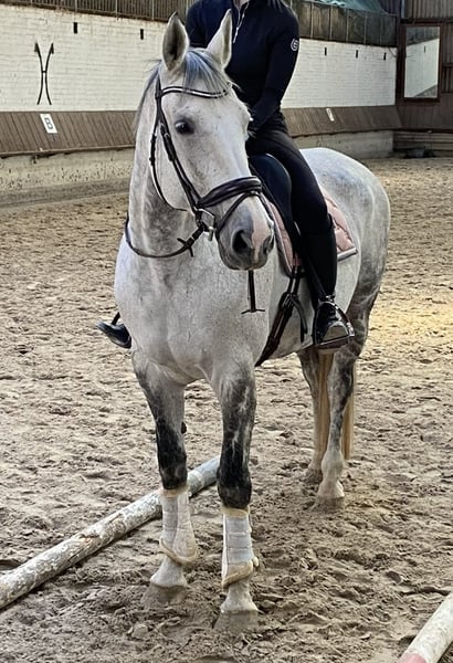 Since I am giving up show jumping, I have decided to sell my 14-year-old Hannoverian mare (Stolzenberg x Lordanos), standing at 175 cm. She is in excellent condition and eager to work. Due to her strong go, especially over fences, she is not suitable as a beginner's horse. I can very well imagine her as a teacher for someone with some jumping experience. She is absolutely reliable at the jump, never refuses, and never runs past. She always finds the right distances, even if they are not perfect. In handling, she is very sweet and people-oriented. Currently, she is barefoot but is also used to full shoes. She is kept in an active stable and is very happy with her turnout. She is also accustomed to being stabled overnight. She has a mild back issue (kissing spines), which does not affect her at all during riding. I purchased her with this condition and have never had any problems. She has competition experience, trained up to S-level show jumping, and has been presented at that level. However, due to her back, I believe she should no longer jump at such heights. Up to A/L level, she has no issues and enjoys it very much. I am explicitly not selling her as a competition horse, as she has already proven herself in that role, but I see her more as a leisure horse for someone who loves her and wants to learn from her, or possibly as a broodmare. A suitable jumping saddle can be purchased additionally for an extra fee. For a trial ride, I charge €35, which will be deducted from the purchase price if you decide to buy. Serious inquiries are welcome. Unreliable or unserious requests will not be answered. Priority goes to the right home over price.