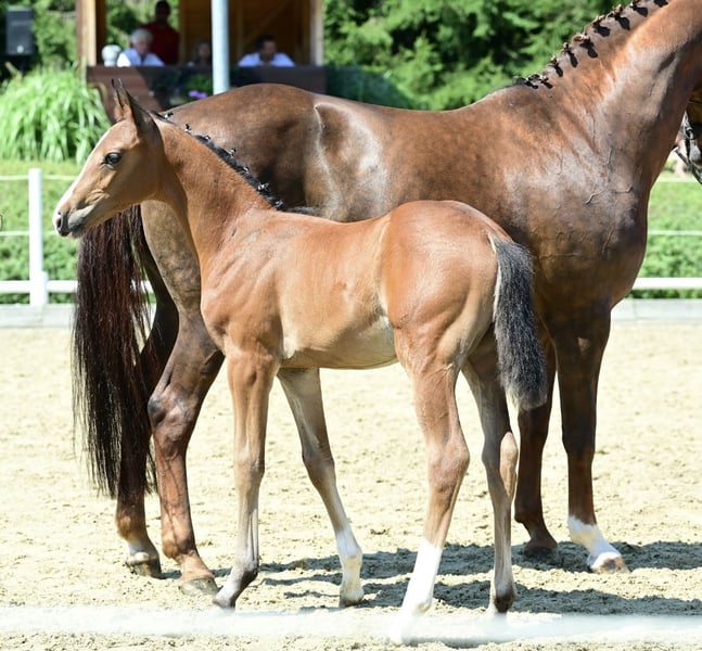Vendemos nuestro Flocke exclusivamente a Bestplatz. Flocke se monta e impresiona por sus movimientos muy vivos y su carácter cariñoso. En 2024 dio a luz a una potra muy tipica de Ehrengold MJ. Ahora en potro para 05/25 por Va Bene. Nunca estuvo enferma, coja o similar. Por favor llame si usted tiene alguna pregunta.