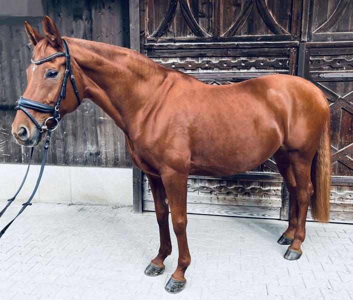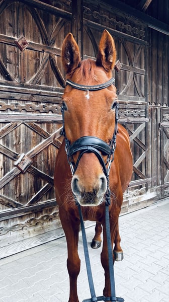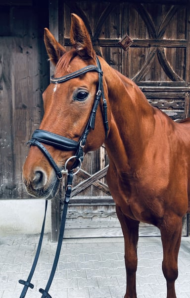 Landfee is a stunning, typy Hanoverian mare with an excellent pedigree and lots of charm. She is trained up to L-level dressage, already performs many M-level movements, and consistently shows motivation, eagerness to learn, and a strong work ethic. In handling, she is sensitive but always friendly and reliable – a true lady who values trust and finesse. She is ideally suited for ambitious leisure riders who enjoy fine dressage work or as a broodmare, as she descends from a desirable bloodline featuring Londonderry and Wolkenstein. Landfee is in excellent health, regularly vaccinated and dewormed, and shoe- and loading-safe. She has achieved placings in L-level competitions and has been consistently well cared for and promoted. All tack and equipment can be purchased with her. I am looking for an experienced rider for Landfee, someone who is willing to build a trusting relationship and appreciates her sensitivity. She is currently housed in a paddock box with daily turnout – a management concept that suits her very well, and I would wish for the same for her in her new home. A true heart horse for someone seeking an elegant, reliable, and motivated partner – both for the riding arena and for breeding. If you are genuinely interested, please feel free to contact me via WhatsApp or give me a call.