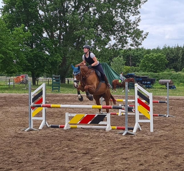Zum Verkauf steht unsere Hannoveraner Stute Danja (20.04.2009, Dunkelfuchs), abstammend von Dancier x Worldly I. Danja war über 8 Jahre zuverlässig im Schulbetrieb im Einsatz und ist ein sehr erfahrenes Lehrpferd. Sie ist dressurmäßig bis Klasse L sowie im Springen bis Klasse A* platziert. Drei gute Grundgangarten, angenehm zu sitzen, aufmerksam und leistungsbereit. Sie geht alleine oder in der Gruppe ins Gelände, kennt Longenarbeit und ist im Springen ehrlich und vorsichtig. Charakterlich ist sie sensibel und fein, reagiert gut auf leichte Hilfen und eignet sich daher für Reiter mit etwas Erfahrung, die mit einer festen Bezugsperson weiter an ihr arbeiten möchten. Danja hatte bereits ein Fohlen. Im Umgang ist sie brav und unkompliziert, kennt Boxen- und Paddockhaltung, ist schmiede- und verladefromm. Wir wünschen uns für Danja einen liebevollen Endplatz, bei dem sie nach ihrer langen Zeit im Schulbetrieb weiterhin regelmäßig, aber individuell von einer Person gearbeitet wird. Bei Interesse und weiteren Fragen telefonisch unter 0176 95473528 melden.