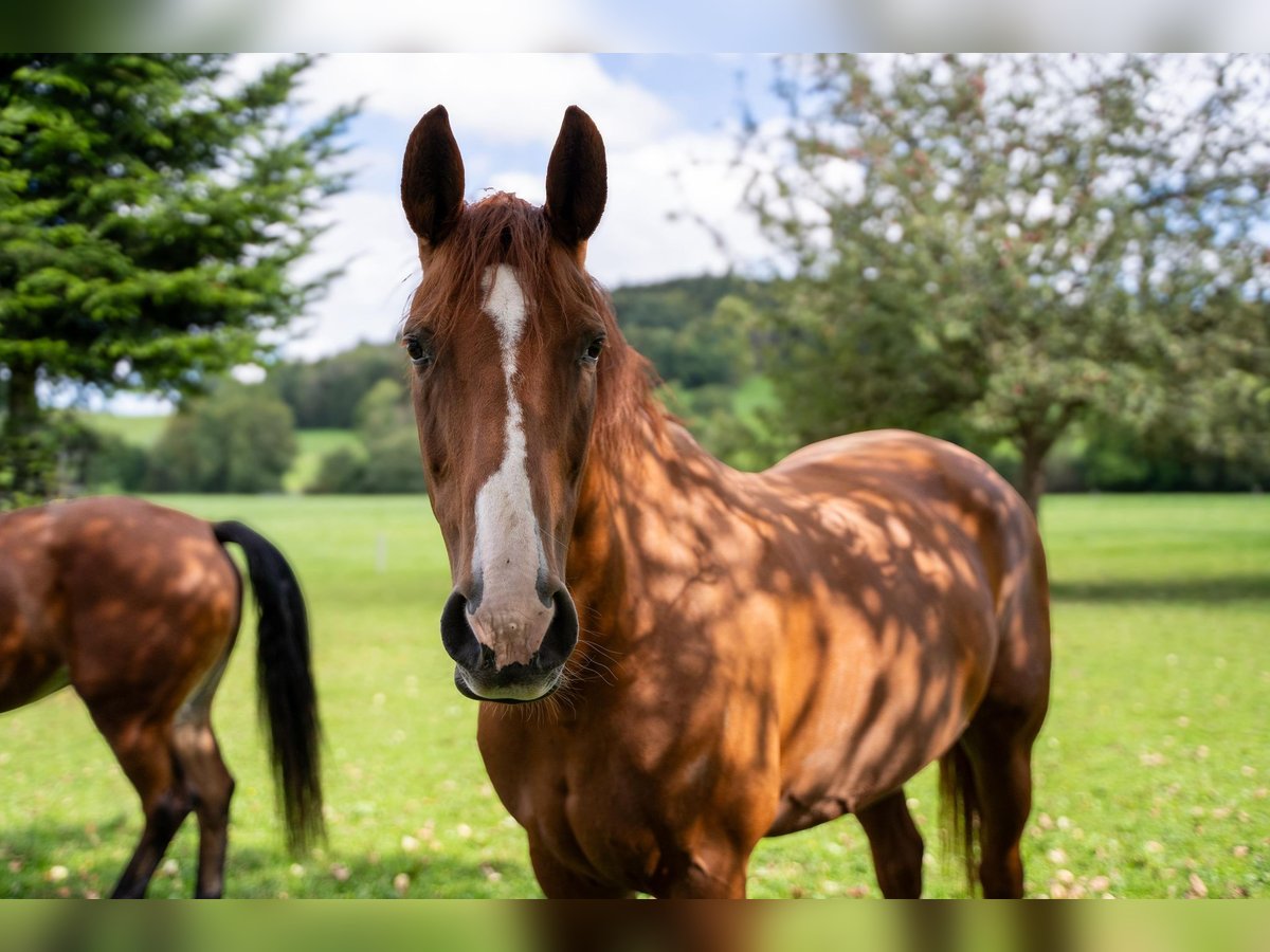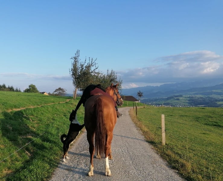 Suche für meine liebe Hannoveraner Stute einen Lebensplatz -Jg. 2009 -165 cm -Standort: SG -verträglich mit Stuten und Wallachen -Preis ist Nebensache, die Menschen und die Haltungsbedingungen müssen passen Sie kann ausgeritten werden am langen Zügel ohne Einschränkungen. Sie hat unfallbedingt seit 10 Jahren Probleme mit der seitlichen Biegung am Zügel, deshalb ist die Arbeit auf dem Platz nicht mehr gut für sie. Vom Tierarzt und Physio ist alles abgeklärt und sie meinen auch, dass Ausritte unbedingt wichtig sind für sie 🥰 Sie liebt lange Ausritte, ist sehr brav, wenn sie einem vertraut. Sie ist verkehrssicher und läuft überall durch. Das einzige, was ihr Mühe bereitet, sind rennende Kühe. Wenn man sie vorbeiführt, geht es besser, im Sattel sollte man sicher sein. Zu Fuss geht sie ganz brav am Halfter mit. Hunde liebt sie 😍 Sie braucht täglichen, längeren Auslauf mit Kumpels, da sie sich das gewöhnt ist. Sie war bisher unkompliziert mit verschiedenen Stuten und Wallachen. Ich gebe sie krankheitsbedingt ab und da der Stall sich auflöst, wo sie täglich viel draussen sein kann. Ich wünsche mir einen Platz, wo sie wieder viel Auslauf zur Verfügung hat und jemand sich liebevoll um sie kümmert.