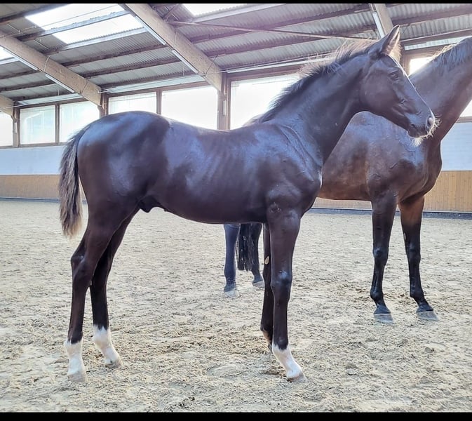 Na sprzedaż wystawiamy naszą obecnie 17-letnią klacz hodowlaną o wysokości około 170 cm, pochodzącą od: Sandro Hit x World Cup I x Absatz x Adorno Jej matka jest bezpośrednią pełną siostrą Weltmeyera. Przez cztery sezony hodowlane miała cztery źrebięta i zawsze od razu przy pierwszym zapłodnieniu przyjęła się bez problemu. Przekazuje się jako wysoka, długonoga, o mocnym typie i szlachetnym wyglądzie, z dobrymi podstawowymi ruchami. Niestety, pięć lat temu miała uraz, w wyniku którego zachowała jedno z nóg, które nieco się już nieco pogrubia. Nie sprawia jej to żadnych problemów i w przeszłości nie miała z tym żadnych trudności. W 2025 roku miała źrebię pod siodłem i od tego czasu nie była już zapładniana. W razie pytań prosimy o kontakt telefoniczny pod numerem: 0176/20119491