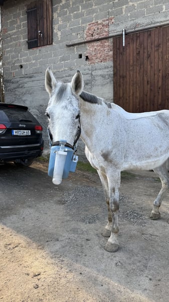 Peggy ist eine wundervolle Hannoveraner Schimmelstute (2008), die man einfach ins Herz schließen muss. Sie ist ein echtes Verlasspferd, immer freundlich, aufmerksam und sehr menschenbezogen – eine Seele von Pferd ✨ Sie liebt den Kontakt zu „ihren“ Menschen, ist unglaublich lieb im Umgang und macht einfach alles mit. Als kleiner Clown auf vier Hufen sorgt sie täglich für gute Laune und ist dabei stets brav und unerschrocken. Was Peggy ausmacht: • Sehr lieb und zuverlässig • Auch von Kindern problemlos zu reiten • Auf dem Reitplatz angenehm und unkompliziert • Im Gelände super motiviert, mit etwas Temperament, aber immer händelbar • Springt gerne, wurde bei uns aber nicht weiter gefördert • Schmiedefromm und brav im Alltag • Kennt Offenstall- sowie Boxenhaltung Gesundheit: Peggy hat ein allergiebedingtes Asthma, das mit Inhalation und Cetirizin gut eingestellt ist. Sie ist dadurch nicht eingeschränkt. Peggy ist kein Sportpferd, sondern ein echtes Freizeit- und Herzenspferd, das seinem Menschen treu zur Seite steht und viel Freude schenkt. Wer ein ehrliches, liebes Pferd sucht, wird sie lieben . Sie wird mit sämtlichen Zubehör wie zb Flexineb ,Sattel ect .