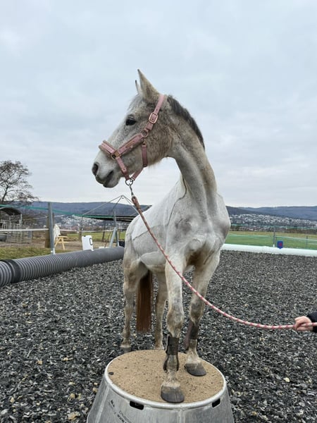 Peggy ist eine wundervolle Hannoveraner Schimmelstute (2008), die man einfach ins Herz schließen muss. Sie ist ein echtes Verlasspferd, immer freundlich, aufmerksam und sehr menschenbezogen – eine Seele von Pferd ✨ Sie liebt den Kontakt zu „ihren“ Menschen, ist unglaublich lieb im Umgang und macht einfach alles mit. Als kleiner Clown auf vier Hufen sorgt sie täglich für gute Laune und ist dabei stets brav und unerschrocken. Was Peggy ausmacht: • Sehr lieb und zuverlässig • Auch von Kindern problemlos zu reiten • Auf dem Reitplatz angenehm und unkompliziert • Im Gelände super motiviert, mit etwas Temperament, aber immer händelbar • Springt gerne, wurde bei uns aber nicht weiter gefördert • Schmiedefromm und brav im Alltag • Kennt Offenstall- sowie Boxenhaltung Gesundheit: Peggy hat ein allergiebedingtes Asthma, das mit Inhalation und Cetirizin gut eingestellt ist. Sie ist dadurch nicht eingeschränkt. Peggy ist kein Sportpferd, sondern ein echtes Freizeit- und Herzenspferd, das seinem Menschen treu zur Seite steht und viel Freude schenkt. Wer ein ehrliches, liebes Pferd sucht, wird sie lieben . Sie wird mit sämtlichen Zubehör wie zb Flexineb ,Sattel ect . Verkauft
