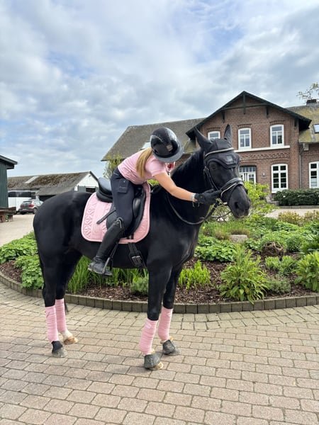 Dear loving Hannoveraner mare Darling SB for sale. We are urgently seeking a wonderful new home for our mare, born in 2008 and standing 16.1 hh. Darling descends from Desperados FHR / Rotspon. On June 1st, 2025, Darling was covered by Titolas, a very well-known dressage stallion. The insemination was successful on the first attempt, without any issues. We have had Darling for three years; prior to that, she lived with a young rider from foal age onwards. Darling is trained up to medium level in dressage and has competed successfully. Until last year, she still participated in competitions with my daughter. Darling also enjoys jumping. She loves hacking out, preferably in company—even if it’s just a bicycle. Darling has a fondness for water. She is healthy. We had a brief issue with mud fever, but it was quickly resolved through stall changes and proper care. She is barefoot, with no shoes. During past winters, she has always been stabled in a box. Now, as she is pregnant, she is turned out with two other pregnant mares and foals in an outdoor paddock. We feel we can no longer do her justice. Even before her pregnancy, Darling was no longer regularly ridden. Currently, she only receives occasional groundwork sessions two to three times a week. The focus is now on gentle handling and care. ✨ Character ✨ Darling is an absolutely affectionate, human-oriented mare. She is sensitive and can sometimes be a “typical mare.” She has a lot of energy. Therefore, she is only suitable for an experienced rider. Not for beginner riding schools. She needs a secure, loving, and consistent hand. She is farrier- and loading-friendly, sound, and well-behaved in her herd. Currently, due to circumstances, she is not rideable. However, there are plenty of videos online, for example on Rimondo, where you can also see her competition results. The previous owner received good reviews. My daughter was not yet fully trained as a rider, and now it is no longer possible. Our wish for her: A loving home where she is the number one, can spend lots of time outdoors, and is engaged in versatile activities. We especially imagine her as a mother-daughter team or with a caring family. It is very difficult for us to part with Darling. We have waited too long already. We also know that, due to her pregnancy, finding a suitable home will be more difficult now. Due to the circumstances, we are selling her well below market value (although she is truly priceless). If you are interested or have any questions, we look forward to hearing from you!