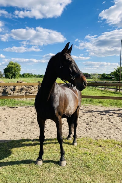 Impressive and honest 18-year-old mare, 170 cm tall, available as a companion horse. Primarily NOT for riding. Registered breeding mare, therefore also very interesting for breeding (has already had one foal). She has been in my possession for 14 years and has successfully competed in show jumping up to the A** class. Also victorious in dressage tests. Recently, she has only been worked from the ground and very rarely ridden out. Due to health reasons (resolved diagnosis on the right hind leg as well as mild headshaking), she is only suitable as a companion horse. Groundwork and light work on the lunge as well as light rides are still possible. She is compatible in the herd and avoids conflicts. She requires no medication, is barefoot (regular farrier visits), and is regularly dewormed and vaccinated. I wish for my mare to find a permanent home within a radius of 100 km around 33415. A visit to the future new stable is a prerequisite. I am parting with her for personal reasons/family circumstances. This is NOT an urgent sale, so please NO inquiries from dealers! Currently, she is compatible in a mixed herd (geldings and mares, also ponies). For further information, please contact me exclusively by phone after 4 PM at 0151 52502222 or via WhatsApp.