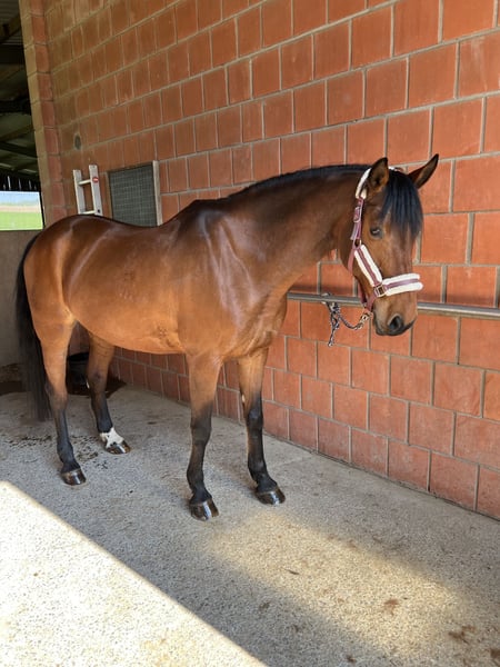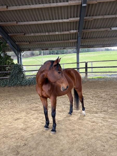 Schweren Herzens suche ich aus zeitlichen Gründen ein neues, liebevolles Zuhause für meine 19-jährige Hannoveraner Stute Ella (ca. 1,60–1,62 m). Ella ist eine sehr hübsche, erfahrene und vielseitige Allrounderin. Ob Dressurarbeit (aktuell bis A-Niveau, L-Lektionen angeritten), entspanntes Ausreiten, Bodenarbeit, Longe oder kleine Sprünge – sie ist mit Freude dabei und reagiert fein auf Hilfen. Sie ist ein charakterstarkes Pferd, das eine klare und ruhige Führung braucht. Hat sie diese, zeigt sie sich zuverlässig und loyal. Damit ist sie auch als Familienpferd denkbar – mit entsprechender Unterstützung durch erfahrene Erwachsene. Im Alltag ist Ella souverän: Landmaschinen, Windräder, Hunde etc. kennt sie gut. Fremden gegenüber ist sie anfangs etwas skeptisch, fasst aber schnell Vertrauen. Aktuell läuft sie barhuf (war auch schon beschlagen), ist brav beim Hufschmied und regelmäßig geimpft sowie osteopathisch betreut. Verladen ist aktuell wenig Routine und sollte wieder geübt werden. Sie hat EOTRH, kommt derzeit aber gut damit zurecht und ist im Alltag unauffällig. Mir ist besonders wichtig, dass Ella in ein liebevolles, verlässliches Zuhause kommt, in dem sie weiterhin abwechslungsreich beschäftigt wird. Platz vor Preis ❤️ Anfragen gerne auch per Telefon / WhatsApp 017624641348