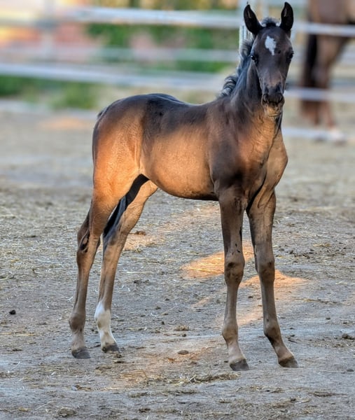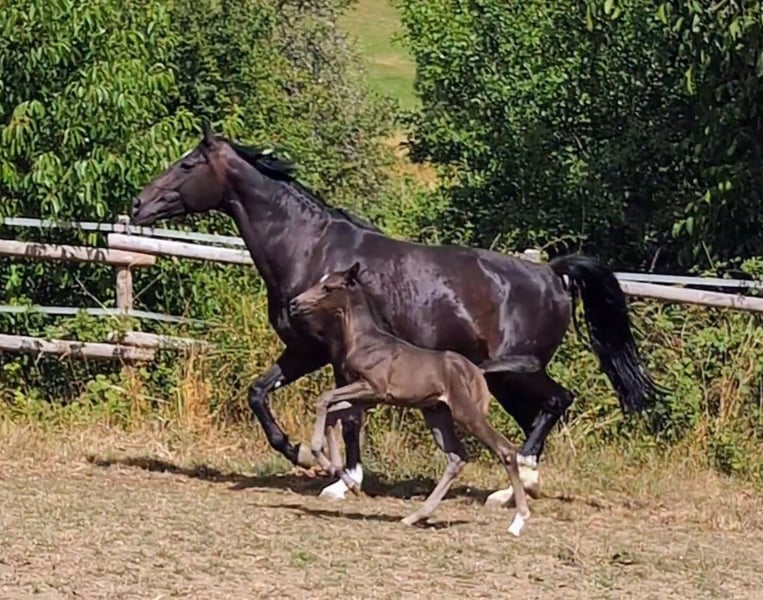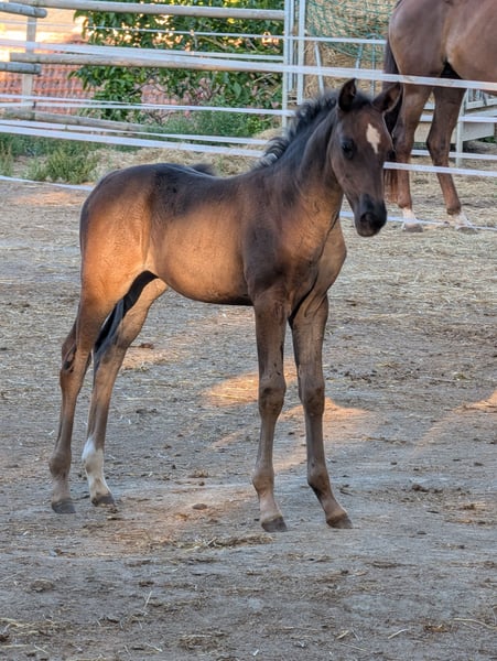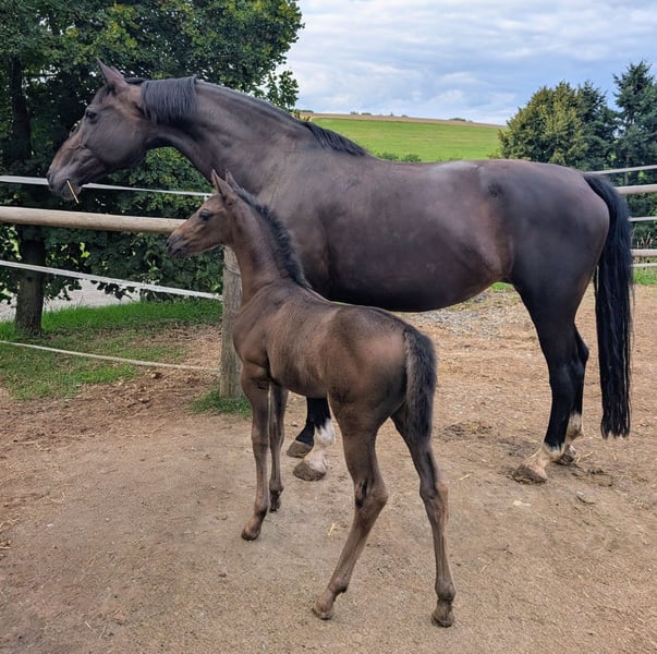 Zum Verkauf steht Lilly Lumpa (geb. 09.07.2025), eine bildschöne Hannoveraner Stute, die durch ihren edlen Typ, ein korrektes Fundament und ihre charmante Ausstrahlung besticht. Lilly präsentiert sich aktuell als Absetzer in einem modernen, sportlichen Format. Wer eine ausdrucksstarke Partnerin für das spätere Dressurviereck sucht und Wert auf eine vertrauensvolle gemeinsame Basis von Anfang an legt, findet in dieser charmanten Stute einen Rohdiamanten mit allerbester sportlicher Perspektive. Aufgrund ihres Formats ist sie die ideale Wahl für Reiterinnen oder ambitionierte Junioren, die ein qualitätsvolles Nachwuchspferd zum Selberziehen suchen, das durch Leichtigkeit und Harmonie überzeugt. Abstammung & Qualität Lilly ist genetisch erstklassig abgesichert: Vater: Der Ausnahmehengst Lord Europe, bekannt für überragende Grundgangarten und Rittigkeit. Mutter: Die Hauptstutbuchstute Henrike (v. Heinrich Heine – Don Frederico). Sie überzeugt mit einem Dressur-Zuchtwert (TSP) von 114 und gab Lilly ihren schicken Typ sowie die korrekten Grundgangarten weiter. Charakter & Entwicklungsstand Als Absetzer ist Lilly bereits bestens auf ihren nächsten Lebensabschnitt vorbereitet: Umgang: Sie ist sehr menschenbezogen, lässt sich halftern, führen und putzen. Haltung: Sie wächst artgerecht auf und zeigt sich im Herdenverband sehr sozial und aufgeweckt. Optik: Dunkelbraun gezeichnet mit Stern und Schnippe sowie einem weißen Hinterbein. Eckdaten im Überblick Name: Lilly Lumpa Geburtsdatum: 09.07.2025 Status: Absetzer Lilly ist gechipt, beim Hannoveraner Verband registriert und kann ab sofort in ihr neues Zuhause umziehen.