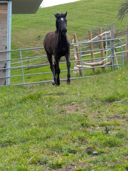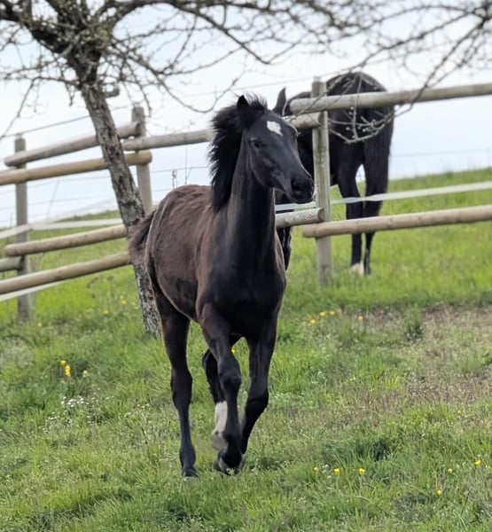 À vendre : Lilly Lumpa (née le 09/07/2025), une magnifique jument Hannoverienne qui séduit par son type noble, ses bases correctes et son charisme naturel. Lilly se présente actuellement en tant que pouliche sevrée, dans un format moderne et sportif. Si vous recherchez une partenaire expressive pour le dressage futur et accordez de l’importance à une relation de confiance dès le départ, cette charmante jument représente une pierre brute avec un potentiel sportif exceptionnel. Grâce à son format, elle constitue le choix idéal pour des cavalières ou jeunes cavaliers ambitieux à la recherche d’un jeune cheval de qualité à éduquer soi-même, qui convainc par sa légèreté et son harmonie. Origines & qualité Lilly possède un pedigree de premier ordre : Père : le cheval stallion d’exception Lord Europe, reconnu pour ses allures exceptionnelles et sa facilité de conduite. Mère : la jument principale du stud-book Henrike (par Heinrich Heine – Don Frederico). Elle se distingue par une valeur de sélection en dressage (TSP) de 114 et a transmis à Lilly son type élégant ainsi que ses allures correctes. Caractère & stade de développement En tant que pouliche sevrée, Lilly est déjà parfaitement préparée pour la prochaine étape de sa vie : Manière : très proche de l’homme, elle accepte la longe, la conduite et le pansage avec confiance. Élevage : elle a été élevée dans des conditions adaptées, se montre très sociable et éveillée en groupe. Apparence : noire avec un étoile, une étoile en front et un postérieur blanc. Données principales Nom : Lilly Lumpa Date de naissance : 09/07/2025 Statut : pouliche sevrée Lilly est pucée, enregistrée auprès de la Fédération Hannoverienne et peut dès à présent rejoindre sa nouvelle famille.