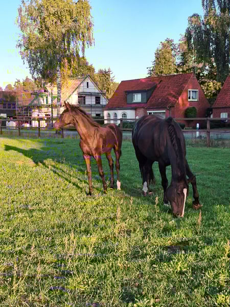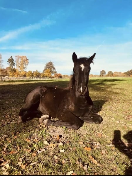 Zum Verkauf steht eine vielversprechende Hannoveraner Stute, geboren im Jahr 2025. Diese elegante Rappstute überzeugt nicht nur durch ihre ansprechende Optik, sondern auch durch ihr Potenzial. Sie ist freundlich und unkompliziert im Umgang, zeigt sich selbstbewusst und bring eine gesunde Portion Neugier mit. Sie kennt alles was man in dem Alter kenne sollte.