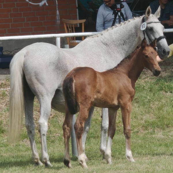 Ein Stutfohlen mit den Genen für eine sportliche Zukunft für Springen und Vielseitigkeit. Aufgrund der Abstammung auch interessant für die Zucht. Stabil im Fundament, gute Grundgangarten, charakterlich einwandfrei – so zeigt sich Greyce. Bei der Fohlenschau wurden ihre Grundgangarten besonders hervorgehoben. in ihrer Gruppe erzielte sie den 3. Platz. Ihr Vater, Grey Top, erzielte bereits in jungen Jahren Siege in Springpferdeprüfungen bis zur Klasse M*, mit Wertnoten bis 9,0. Seine beeindruckende Vererberleistung wurde 2019 mit dem Grande Preis belohnt. Die Mutter stammt ab von Quite Capitol,(Quidam de Revel), der bis 1,50 m erfolgreich im Springen war, und Lesanto, von Landgraf/Capitol, Malteser Saskibard