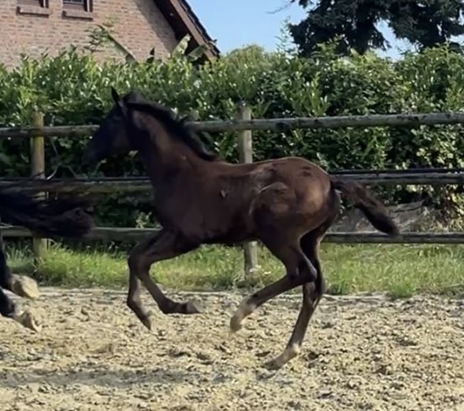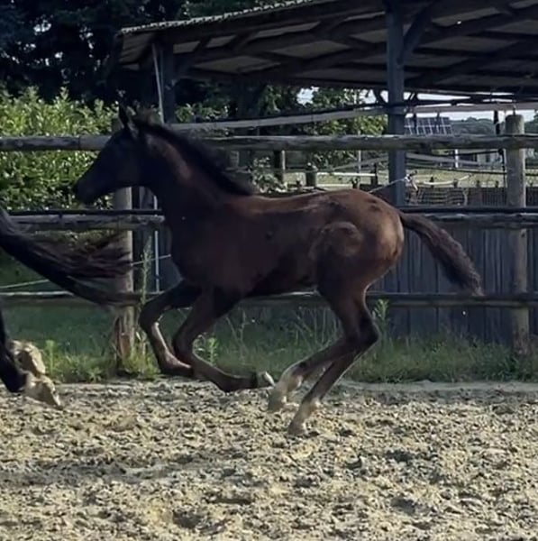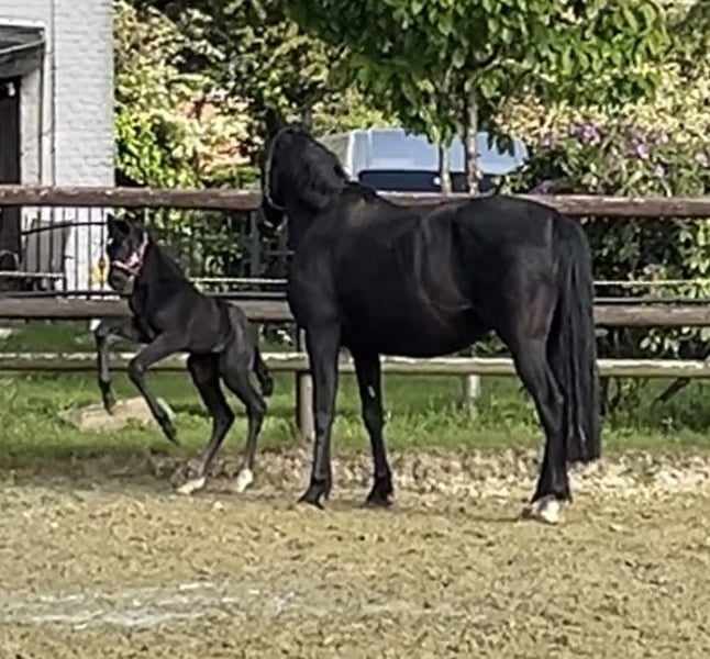 Onze Sweet Glamour draagt haar naam met recht. Een echt mooi merrieveulen uit een uitstekende dressuurstam, zal ze een statement maken in de bak. Ze is geboren op 02-05-25. Haar vader Sarai L (Secret x For Romancier) valt op door schoonheid en vermogen in zijn zwarte jas. Haar moeder (Glamourdale x Donnerhall x Pik Bube I) verenigt het beste in zich en heeft een krachtige bouw. (Zou eventueel ook te koop staan. 3 jaar oud, onder het zadel en heeft 2 veulens gehad.) Sweet Glamour verenigt dit alles, inclusief een geweldig, mensgericht en zeer aanhalig karakter. Op de eerste video is de mooie dame 4 dagen oud en de andere video is gemaakt op 21-07-25.