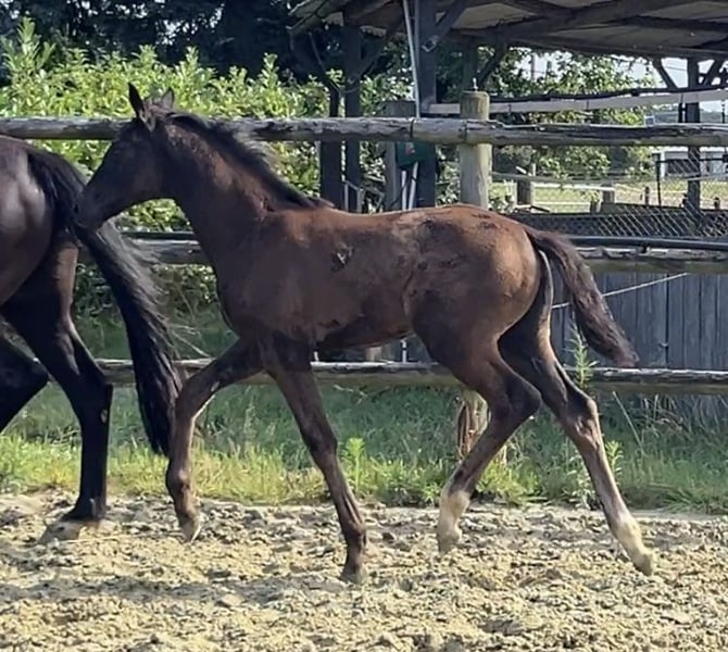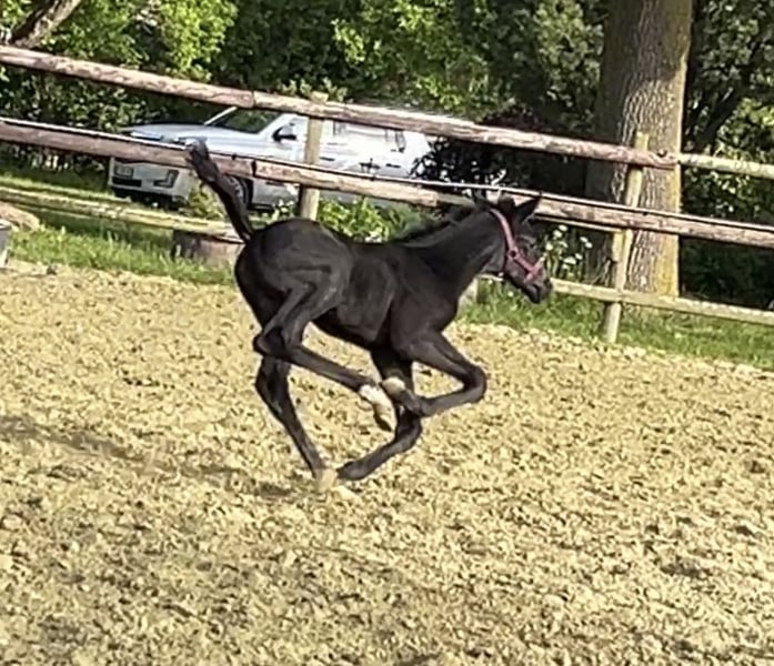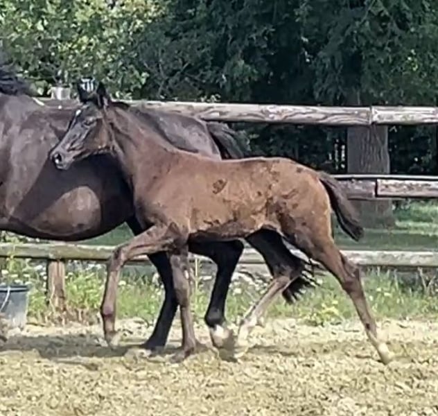 Unsere Sweet Glamour trägt ihren Namen zu Recht. Ein wirklich hübsches Stutfohlen aus bestem Dressurstamm, wird sie ein Zeichen im Viereck setzen. Geboren ist sie am 02.05.25. Ihr Vater Sarai L (Secret x For Romancier) besticht durch Schönheit und Vermögen in seiner schwarzen Jacke. Ihre Mutter (Glamourdale x Donnerhall x Pik Bube I) vereint das Beste in sich und ist mit einem kräftigen Fundament ausgestattet. (Würde eventuell auch zum Verkauf stehen. 3-jährig angeritten und hatte 2 Fohlen) Sweet Glamour vereint alles davon, inklusive einem tollen und menschenbezogenen und sehr verschmusten Charakter. Auf dem ersten Video ist die hübsche Dame 4 Tage alt und das andere Vidoe ist am 21.07.25 entstanden.
