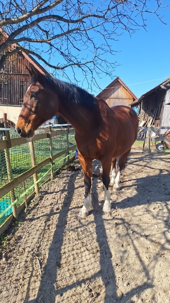 Z ciężkim sercem, z powodu braku miejsca, muszę niestety oddać moją 20-letnią, 165 cm wysoką klacz (na podstawie umowy ochronnej). W obsłudze jest bardzo łagodna. Ze względu na chorobę, jest już tylko częściowo jezdna, możliwe jest wyprowadzanie na spacer w chodu – w przypadku poważnego zainteresowania mogę podać dokładniejsze informacje. Była regularnie szczepiona (również przeciwko herpes). Jeździ na gołym kopycie i dobrze sobie z tym radzi. Oczekujemy możliwości odwiedzenia jej. Liczy się miejsce, nie cena!