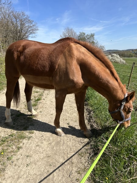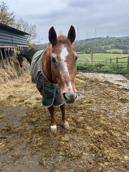Liebe Pferdefreunde, leider müssen wir uns aus persönlichen Gründen von unserer Stute trennen. Unsere Funny ist 26 und seit diesem Jahr in Rente. Deshalb geben wir sie auch als Beisteller ab. Sie soll nicht mehr voll gearbeitet werden. Kleine Ausritte im Schritt sind bestimmt möglich und auch über ein bisschen Beschäftigung am Boden freut sie sich. Sie ist super lieb im Umgang und auch für Kinder geeignet. Hufschmied und Tierarzt sind kein Problem. Nur auf den Anhänger geht sie nicht gerne. Sie hat keine gesundheitlichen Probleme und ist auch geländesicher. Bei uns steht sie im Offenstall kennt aber auch Box. Wir wünschen uns für sie einen Platz, wo sie ihren Lebensabend verbringen kann. Ein kennenlernen ist natürlich kein Problem. Bei Fragen gerne melden.