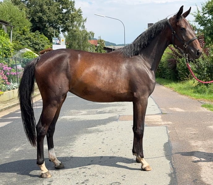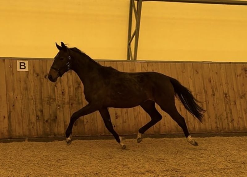2,5-jährige Stute von Escaneno x Don Schufro x Rubinstein. Die Stute ist aus der gleichen Mutter wie der Landbeschäler „Finnigan“