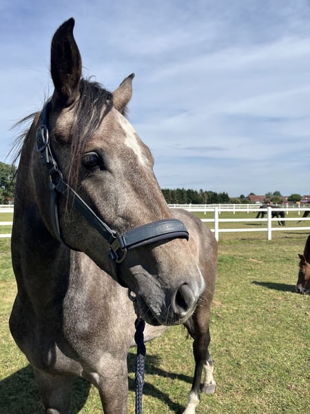 Nasza klacz hanowerska „Velvet” pilnie szuka nowego domu, ponieważ przez studia, pracę dorywczą i inne konie nie jestem w stanie poświęcić jej wystarczająco dużo czasu. Codziennie dostrzegam, jak bardzo cieszy się z uwagi i potrzebuje „swojego” człowieka. Velvet urodziła się w 2023 roku i jest córką Valensky x Forsyth. Będzie siwą klaczą. Posiada nie tylko wspaniałe predyspozycje, ale także jasny umysł i przyjazny charakter. Velvet jest regularnie czyszczona i zna już podstawy pracy z ziemi, przy czym zawsze bierze w tym udział z ciekawością, chęcią do nauki i uwagą. Obecnie przebywa w boksie z rówieśniczką w ciągu dnia oraz w mieszanej grupie. Velvet jest zaszczepiona, regularnie odrobaczana i pokazana kowalowi. Szukamy dla niej osoby, która już teraz regularnie będzie się z nią zajmować i w ciągu następnych lat będzie ją z miłością i cierpliwością szkolić. Prosimy o brak zapytań od handlarzy. Szukamy domu najlepiej z miejscem na całe życie i stałą osobą do kontaktu. Nasza oczekiwana cena wynosi 9.000€, ale w przypadku absolutnie najlepszego miejsca jest jeszcze do negocjacji. W przypadku zainteresowania czekamy na wiadomość. 0176 45857615