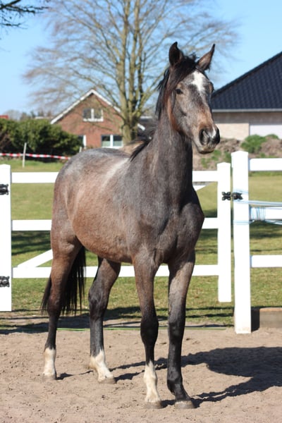Unsere Hannoveranerstute „Velvet“ sucht dringend ein neues Zuhause, da ich ihr durch Studium, Nebenjob und meine anderen Pferde inzwischen zeitlich einfach nicht mehr gerecht werden kann. Ich merke jeden Tag, wie sehr sie die Aufmerksamkeit genießt und einfach „ihren“ Menschen braucht. Velvet ist 2023 geboren und stammt ab von Valensky x Forsyth. Sie wird ein Schimmel. Somit bringt sie nicht nur tolle Anlagen mit, sondern auch einen klaren Kopf und ein freundliches Wesen. Velvet wird regelmäßig geputzt und kennt bereits die Grundlagen der Bodenarbeit, wobei sie immer neugierig, lernfreudig und aufmerksam mitmacht. Derzeit steht sie tagsüber mit einer gleichaltrigen Stute im Offenstall und tagsüber in einer gemischten Herde. Velvet ist geimpft, wird regelmäßig entwurm und dem Schmied vorgestellt. Wir wünschen uns für sie eine Person, die sich bereits jetzt schon regelmäßig mit ihr beschäftigt und sie in den nächsten Jahren liebevoll und mit viel Geduld ausbilden möchte. Bitte keine Anfragen von Händlern. Wir suchen ein Zuhause bestenfalls mit Platz auf Lebenzeit und fester Bezugsperson. Unsere Vorstellung liegt bei 9.000€, ist aber bei einem absoluten Bestplatz noch etwas verhandelbar. Bei Interesse freuen wir uns über eine Nachricht. 0176 45857615