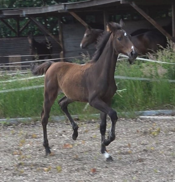 Quäntchen Glück, ist eine typvolle bewegungsfreudige junge Stute mit freundlichem und menschenzugewandtem Charakter. Vater Quintessential wurde 3-jährig Hengstleistungssieger, Landesvizechampion und Bundeschampionatsteilnehmer, auch Großvater Danone II vererbt mit Donnerhall / Weltmeyer bestes Dressurblut, im mütterlihem Pedigree ist über Marlesko xx und Adler Ausdauer und Springveranlagung zu verzeichnen. Somit ist sie doppelt veranlagt und bringt alles mit für ein Freizeitpferd , aber auch erfolgreiches Turnierpferd in Dressur und Vielseitigkeit. Direkt vom Züchter