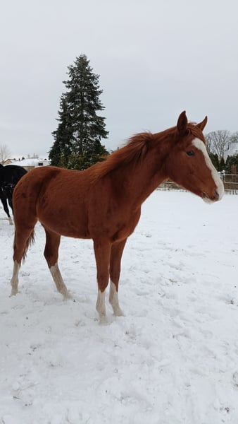 Vendo esta hermosa y joven yegua de Sky x Floriscount Nacida en marzo de 2024 Se presume que será de gran tamaño, su madre mide 1,75 m y puede ser vista en el lugar. Showgirl crece según su edad en una manada mixta con mucho espacio, está muy bien socializada y conoce el ABC del potro. Está acostumbrada a estar al aire libre las 24 horas, así como a la caja, bebederos automáticos, etc. Es muy ejemplar y tranquila con el herrador y el veterinario. Ha sido desparasitata varias veces y está vacunada contra la influenza, tétanos y el virus del Nilo Occidental. Es muy afectuosa con las personas, curiosa y mimosona. Cuenta con papeles completos de Hannover. Si se desea, puede quedarse en el lugar para su crianza y entrenamiento hasta el inicio de su montura. Para más información o si tienes alguna pregunta, no dudes en enviar un mensaje.
