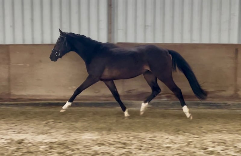 Trudi ist eine kleine 3-jährige Stute von Trussardi/ Floris Prince/ Lauries Crusador. Mit ihren Stockmaß von 1,55 m wird sie das perfekten Reitpferd für den kleineren Reiter. Trudi wird gerade auf das Anreiten vorbereitet und ist aktuell anlongiert. Sie zeigt sich der Arbeit sehr aufgeschlossen und lernt neue Dinge schnell. Im Umgang ist sie sehr brav und kennt alles was ein 3-jähriges Pferd kennen muss. Trudi durfte eine gute Aufzucht in einer kleinen Stutengruppe mit viel Auslauf und Weide genießen. Drei gute Grundgangarten gepaart mit viel Schwung und Elastizität lassen auf eine erfolgreiche Zukunft im Viereck hoffen. Sie ist natürlich schon schmiede-und verladefromm. Ein sehr guter TÜV aus 2025 liegt bereits vor. Das einzige Manko was Trudi mitbringt ist das Koppen. Der Preis steigt mit der weiteren Ausbildung, also gilt hier schnell sein lohnt sich.