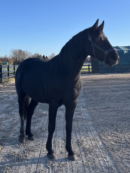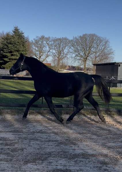 Our Hanoverian mare is looking for a new home, as I am no longer able to give her the time she deserves due to my studies, part-time job, and other horses. Diva enjoys attention and would love to be kept busy – unfortunately, I can no longer provide her with regular interaction. * Hanoverian * Born in 2023 * Sired by Diacontinus x Black Jack * Current height: 1.60 m (approx. 15.3 hh) * Estimated final height: about 1.65 – 1.68 m (16.1 – 16.3 hh) * Will develop into a grey Diva is curious and friendly in daily handling. She is initially a bit shy around strangers, but once she has warmed up to her person, she becomes a true heart horse. In turnout, she shows a healthy amount of temperament. She is regularly groomed and already familiar with ground work and work in the round pen, including basic lunging, and is very eager to learn. Diva spends her nights in an open stable with a gelding and is out on paddock and pasture in a mixed herd during the day. Box stall housing with plenty of turnout is also no problem for her. She has been regularly wormed, vaccinated, and will be introduced to the blacksmith. We are looking for someone who will engage with Diva and lovingly and patiently train her in the coming years. A lifelong home with a caring person is especially important to us. She will not be sold to traders. If you are genuinely interested, please send us a message with some information about yourself and her potential new home! Feel free to contact us via WhatsApp: 0176 45857615