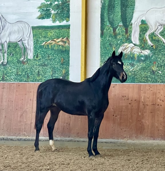 Diese typvolle Stute überzeugt nicht nur durch ihren Ausdruck, sondern auch durch ihren eleganten Bewegungsablauf und ihre vielversprechenden Anlagen für die Dressur. Sie ist gut erzogen, hat ein freundliches Wesen und zeigt bereits jetzt großes Potenzial. Sie entstammt einer sportliche sehr erfolgreichen Mutterlinie von Lord Loxley - Rhodos - Argentan. Alle Nachkommen aus diesem bewährten Mutterstamm sind sehr rittig und charakterlich absolut aufgeschlossen, ehrlich und leistungsbereit. Sie ist noch nicht longiert oder geritten. Das Pferd ist gesund, kein Koppen, weben oder ähnliches. Röntgenbilder liegen bisher noch nicht vor. Anfragen gerne per WhatsApp unter +49 151 19526002. Für weitere Informationen oder einen Besichtigungstermin stehen wir Ihnen gerne zur Verfügung. Stefanie Steinhauf Gestüt Babiacki