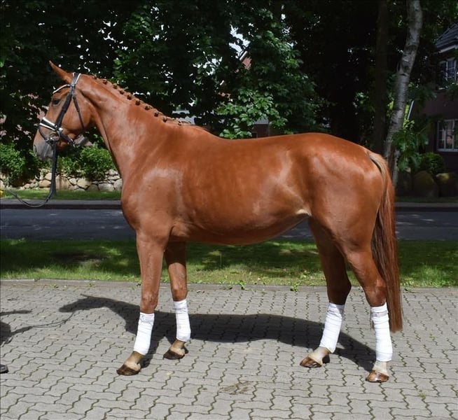 Eine athletisch aufgemachte Stute, die auf den ersten Blick zu überzeugen weiß . Sie verfügt über eine sehr gute Galoppade , raumgreifenden Schritt und eine sehr elastische Trabphase. Top rittig, immer an der Seite seines Reiters. Elsa ist leicht angeritten. Mehr Infos finden Sie auf unserer Homepage. Probereiten jederzeit nach Absprache möglich.