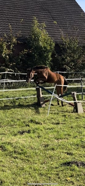 Diacara is a versatile mare sired by Dia Corrado out of Fishermans Friend. Given her age, she has not yet been extensively worked. She calmly performs all three gaits in the arena (done twice so far) and also in the field. During her first outdoor experiences on holiday, she met riders for the first time and was completely fearless and brave. She tends to lead the way and remains relaxed even when other horses canters off. She has also jumped over small logs without hesitation. I am happy to send videos upon request. Diacara was raised in a family environment and is very human-oriented. As a foal, she was brought along as a companion horse in the field and is familiar with various everyday situations, such as loud children on trampolines or tractors. I have also ridden her alone several times, and she has been able to be loaded independently and has waited calmly on the trailer on occasion. She currently gets along well in a mixed herd and is familiar with box and open stable management. Diacara is the perfect leisure partner, always eager to participate and happy to be involved. She also has the potential to become an excellent partner for sport. Her sire, Dia Corrado, was Reserve Champion at the 50-day test in Adelheidsdorf, earning top scores of 9.0, including for his temperament and overall impression. His rideability was also rated 9.0 by both the jury and an external rider. For his willingness to perform, he received the highest score of 9.5. He was the winner of the 14-day test in Adelheidsdorf, with a jumping index of 10.0 in free jumping. He scored 9.0 for character and willingness to perform, which contributed to his overall jumping score of 9.43. He completed the FN sport test with a score of 8.65 and received a 9.0 for his manners. So far, Diacara has shown a lovely manner and has never stopped in front of a jump, although she has not yet been extensively trained in jumping due to her age. She has been healthy with the exception of a minor hoof injury.